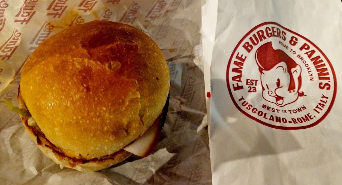 Panini molto buoni, io sono vegetariana e l'opzione dedicata è molto buona. Ottime anche le patatine, unica cosa che non ci ha convinto gli onion rings in quanto avevano un forte sapore di rosmarino. Comunque ottimo e consigliato!